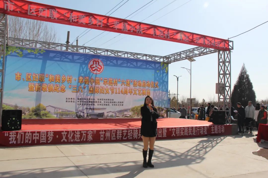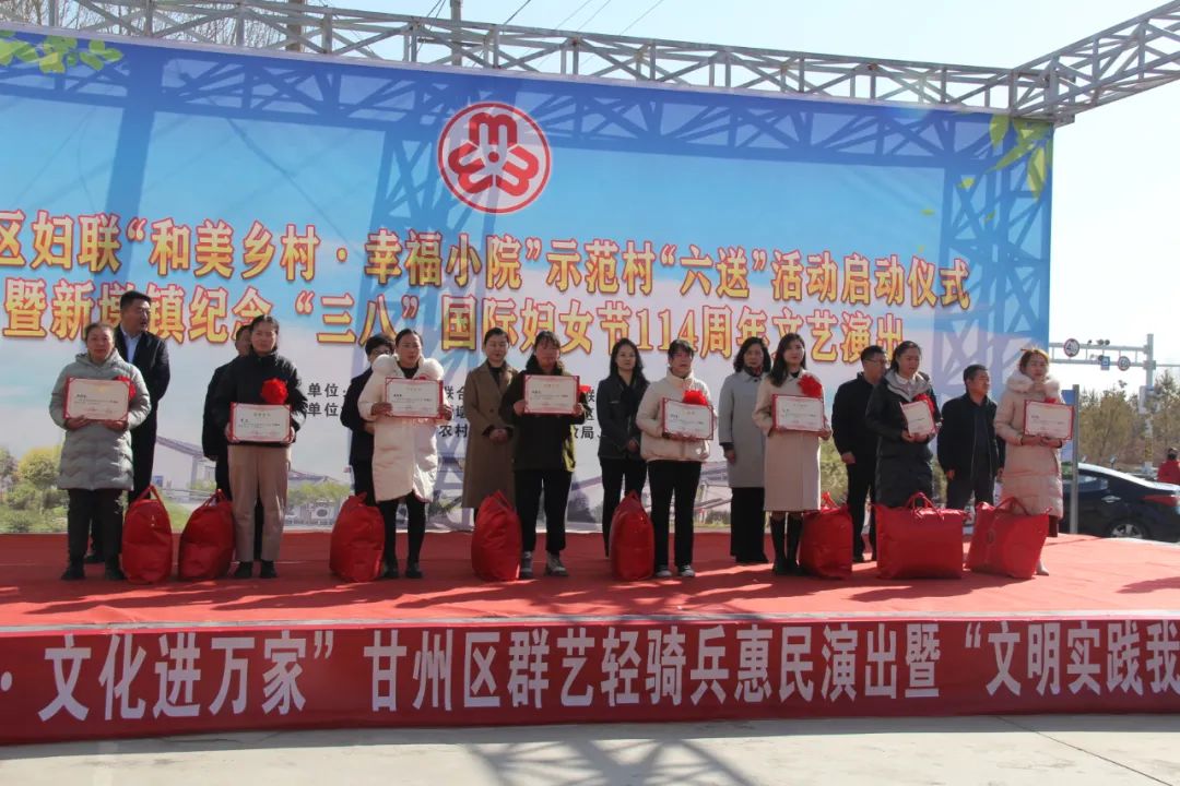 3月8日,张掖市妇联、甘州区妇联在新墩镇双塔村开展“和美乡村·幸福小院”示范村“六送”活动启动仪式,市妇联党组书记、主席索晓静出席并讲话,区委副书记王敏致辞,区妇联主席刘彩霞主持活动。市、区妇联干部、新墩镇全体领导干部、双塔村妇女群众代表共计300余人参加活动。