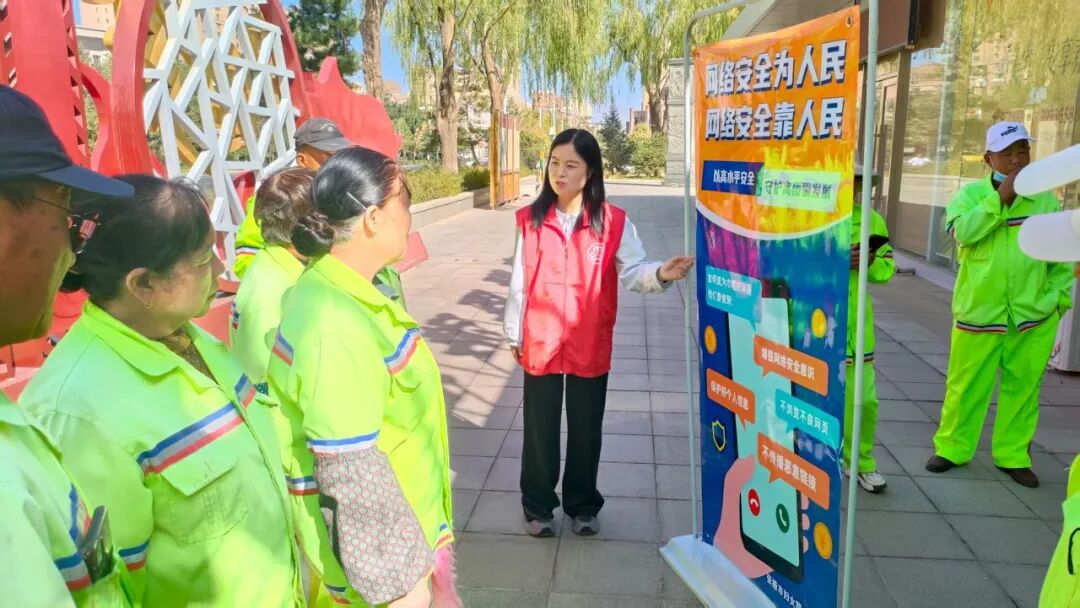 联合社区、街道及巾帼志愿者深入辖区楼院小区进行宣传。在社区广场,向过往居民发放网络安全知识手册、防范电信网络诈骗指南等宣传资料600余份。