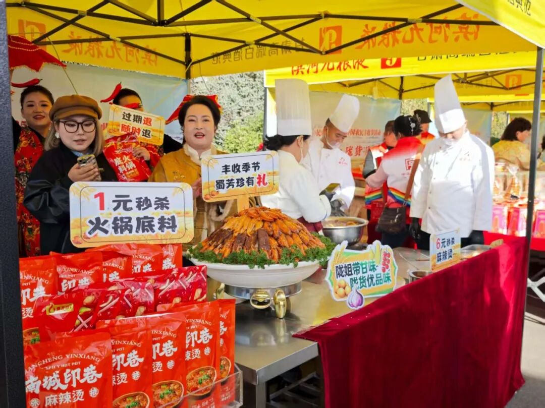 现场品鉴更是成为直播“流量密码”。热气腾腾的手工水饺供不应求,麻辣烫锅前更是围满了人,刚煮好的土豆宽粉裹着浓郁汤汁,咬一口爽滑劲道,过往市民纷纷点赞:“这味道太地道了,在家也能复刻出丰收节的滋味!”还有老味家的传统月饼皮薄馅足、入口香甜,引得大人小孩都纷纷品尝,直播现场一片欢乐,参观群众直呼过瘾,屏幕前的网友更是纷纷留言“求链接!看得我都馋了!”,丰收节“线上+线下”双线营销推动农特产品、地方美食销量一路走高。
